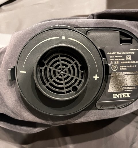 次に空気の入れ方ですがこれも非常に簡単。AC100V電源を使用するエアーベッドで寝る面を上にしたらダイアルを右方向に回転させます。するとベッド内に空気が吸入されどんどんとベッドがふくらんでいきます。およそ2分弱程度でベッドの完成です。スイッチを切る場合は右方向に回転させたダイアルを元の位置に戻せば吸入が止まります。使用後はダイアルを左に回転させればベッド内の空気を抜くことができます。排気が終われば吸気の時と同様元の位置に戻せば完了です。(自動停止はないので自分で空気圧を判断する必要があります。空気を入れすぎないように注意してください。)